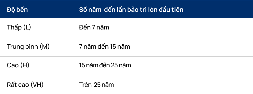 Cần thực hiện bảo trì nhỏ định kỳ để đạt được tuổi thọ yêu cầu của hệ thống thiết kế đến lần bảo trì lớn đầu tiên.