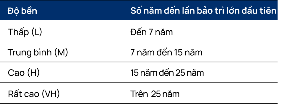 Lưu ý: Tuổi thọ hệ sơn không đồng nghĩa với thời gian bảo hành.